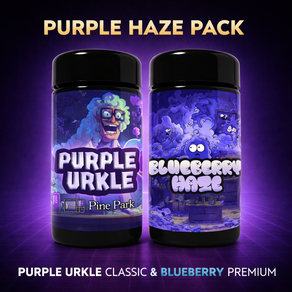 The Purple Haze Pack combines Purple Urkle (Classic) with Blueberry Haze (Premium) for a full-bodied, berry-forward experience.